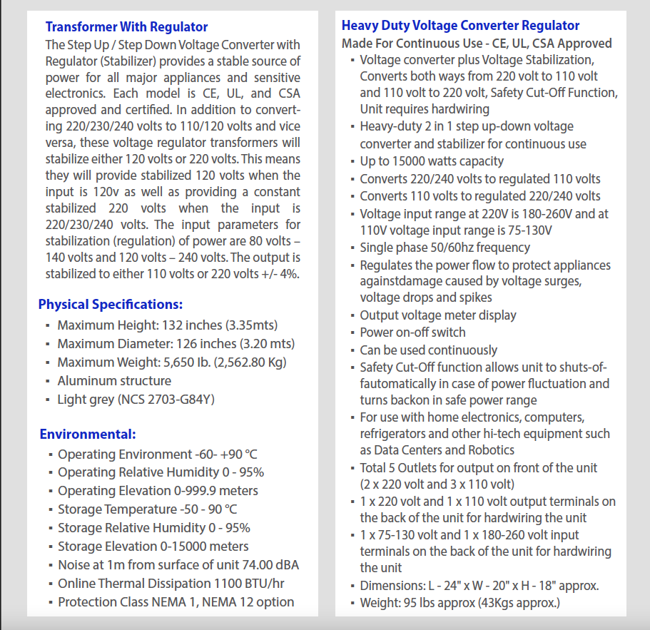▪ Converts 220/240 volts to regulated 110 volts
